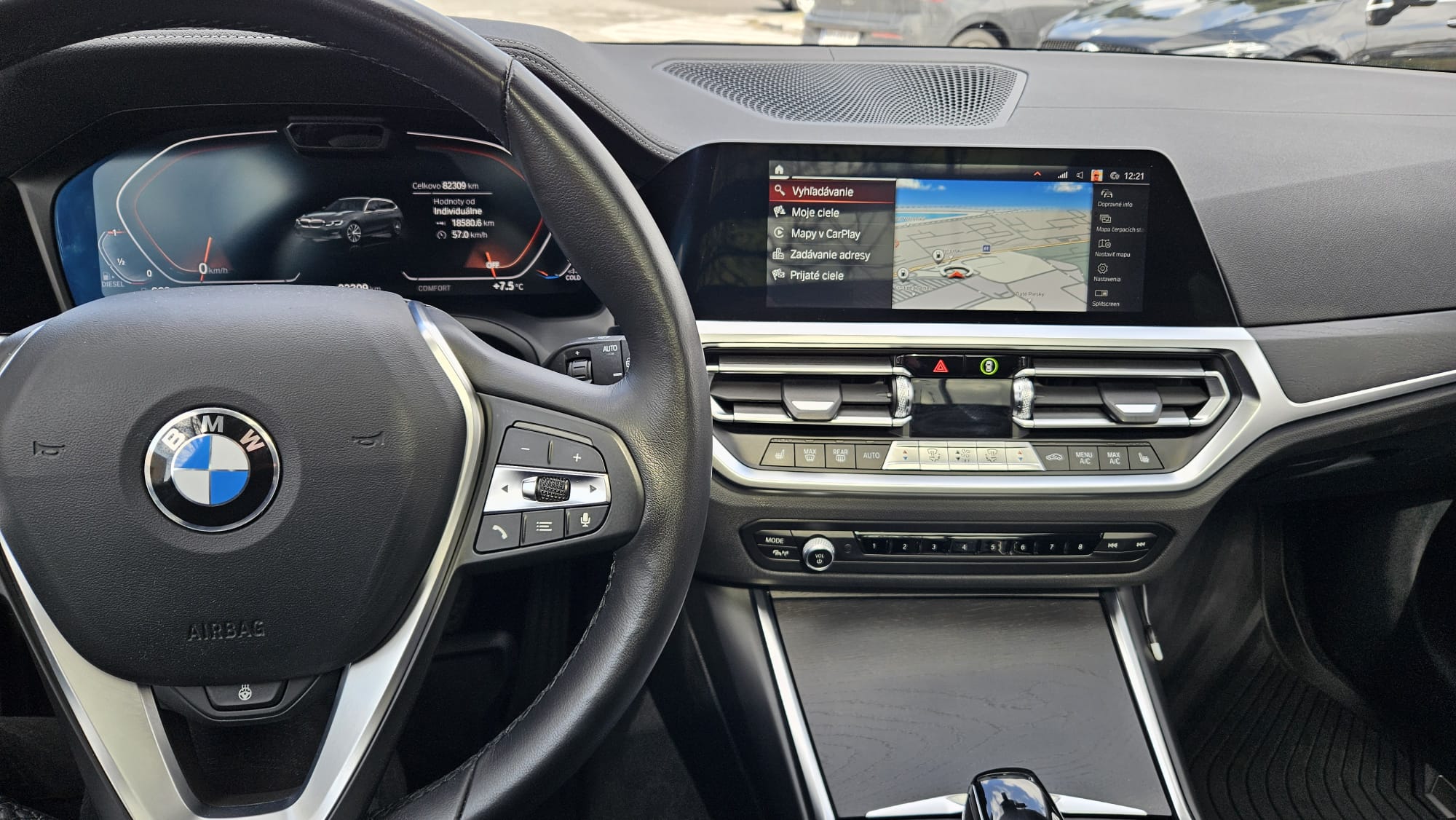Klimatizovaná priehradka, Klimatizácia trojzónová , Ambientné osvetlenie, Android Auto, Apple CarPlay, Lakťová opierka, Bluetooth handsfree, Tempomat, Elektrické ovládanie kufra, Elektrické zrkadlá, Elektrické okná 4x, Fólie, Vyhrievané zrkadlá, Vyhrievané sedačky, Vyhrievaný volant, Bezkľúčové otváranie dverí, Bezkľúčové štartovanie, Kožený paket, Kožený interiér, LED svietenie, Multifunkčný volant, Navigačný systém, Palubný počítač, Vonkajší teplomer, Parkovací asistent, Parkovacie senzory, Diaľkové ovládanie zamykania, Virtuálny kokpit, Welcome light, WLAN / Wifi Hotspot